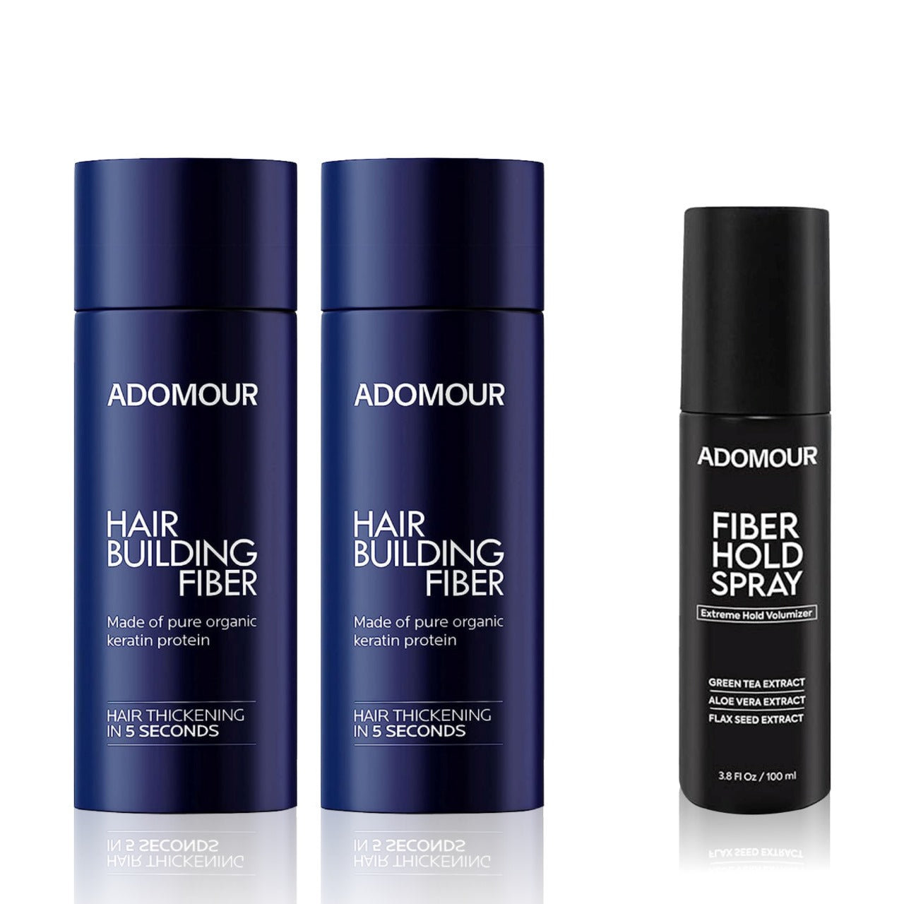 Adomour Hair Building Fiber - 27.5g (Pack of 2) with Free Fiber Hold Spray